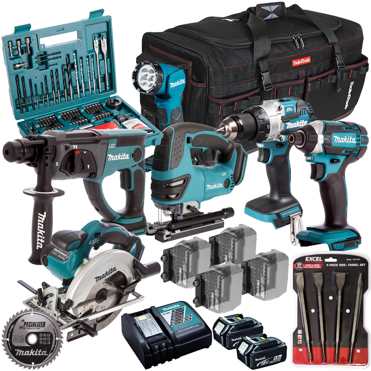 Makita 18V 6 Piece Combo Kit with 2 x 5.0Ah Battery Charger & Accessories Set T4TKIT-17232